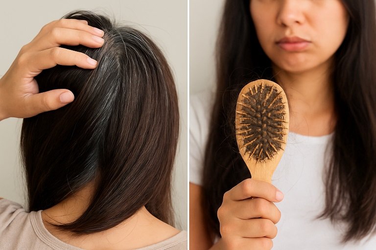 – मेनोपॉज: एस्ट्रोजन कम होने से बालों में वॉल्यूम कम होता है।